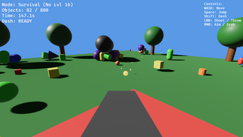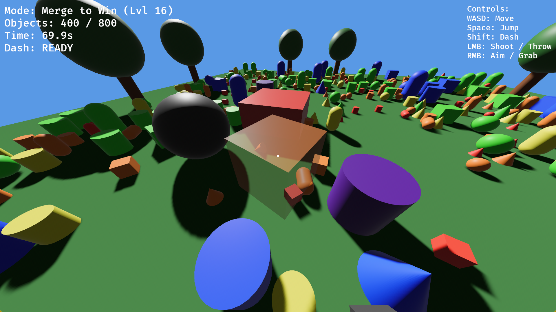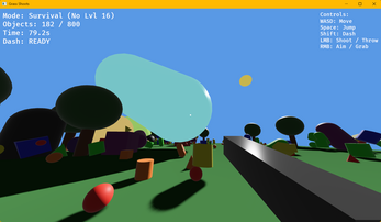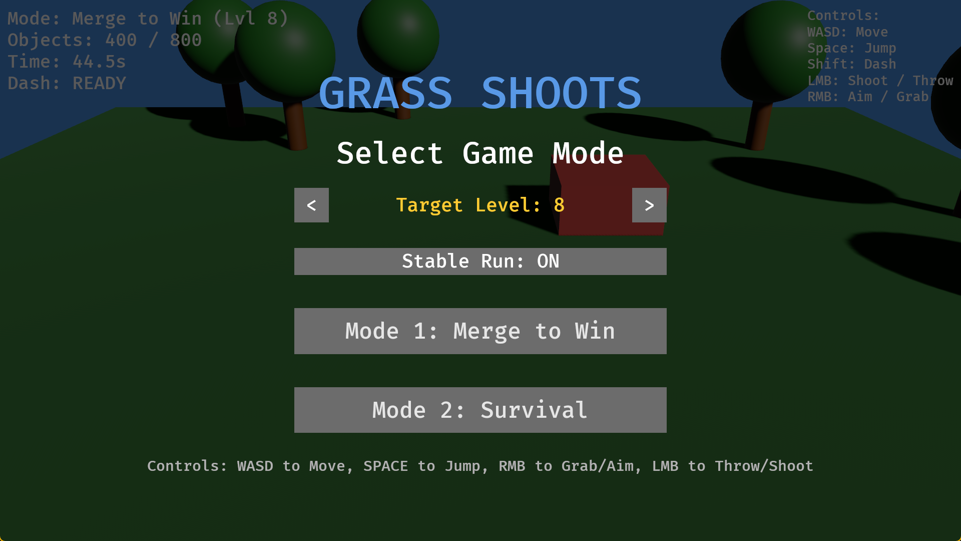 Grass Shoot is a FPS meet 2048 where you either merge shapes together to create bigger shapes, or you shooting them down to prevent them from exploding in size. The choice is yours.